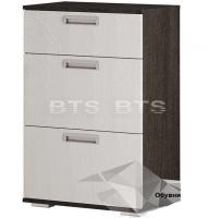 За откидными дверцами цвета лоредо расположились полки для обуви, в верхнем выдвижном ящике можно хранить аксессуары или средства по уходу за обувью, ручки в данной модели интегрированы в фасады изделия.