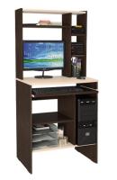 Оригинальный стол для компьютера «Юпитер-М02» достоин внимания даже самых притязательных покупателей. Его нижняя часть разбита на два открытых отдела, один из которых имеет полку, а второй представляет собой нишу для системника. Под удобной столешницей имеется большая панель выдвижного типа для клавиатуры, а над столешницей – высокая надстройка с полками. Стол отличается компактностью, поэтому хорошо вписывается в обстановку малогабаритных домов и квартир. Поверхность деталей оформлена под натуральное дерево, что придаёт изделию особенно привлекательный вид. Размер ниши под монитор ПК: Высота 450 Ширина 485