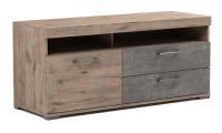 В тумбе под ТВ Денвер располагаются два выдвижных ящика и открытая полка. Шариковые направляющие надежно удерживают ящики при открывании.