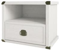 Прикроватная тумба Magellan 1S имеет ширину 51 см и глубину 40 см. Модель такого размера не загромождает пространство и смотрится уместно даже в маленькой спальне. Ее высота 44 см подойдет кровати и невысокому диванчику. Тумба «Магеллан» имеет светлую поверхность, приближенную к белому цвету и выразительную текстуру сосны винтаж. Для усиления стилевого значения производитель декорировал тумбочку металлическими уголками, внешне напоминающие заплатки.